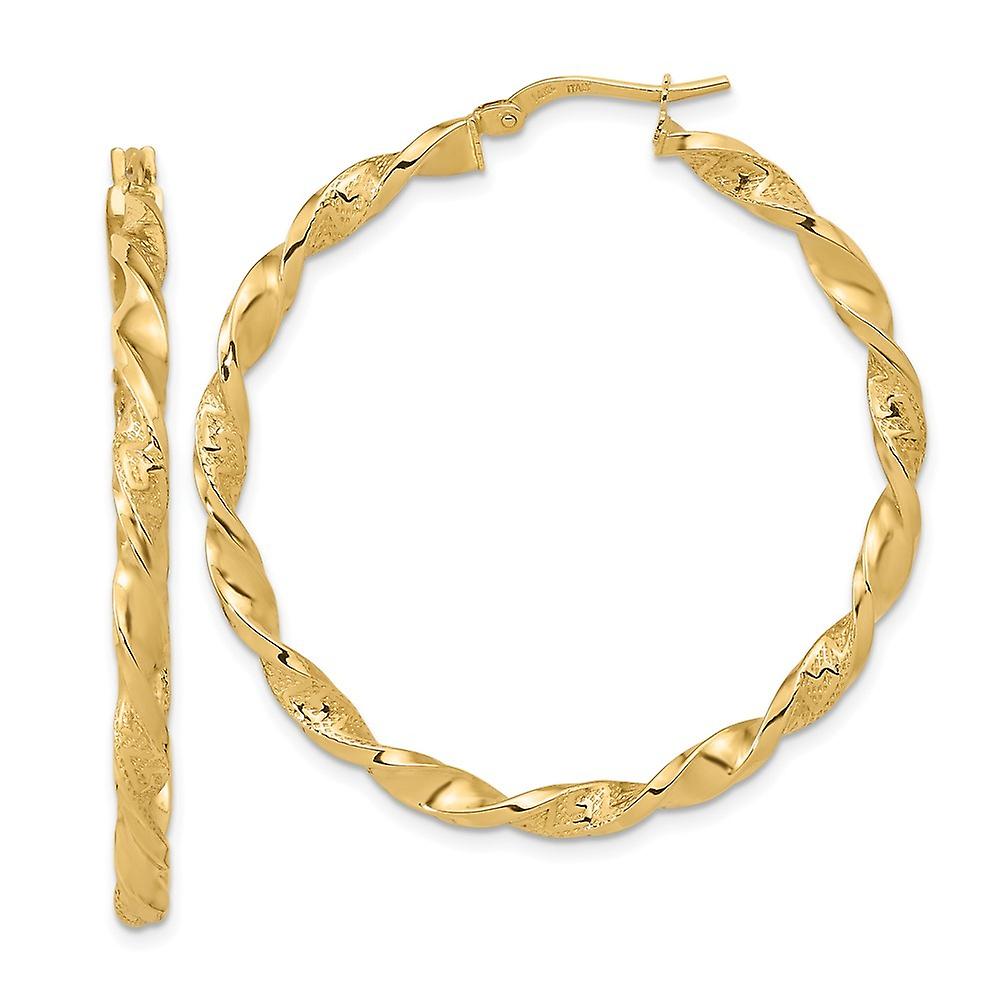 14k Gold Polished and Textured Twisted Hoop Earrings 42.5mm Wide-Hoop Earring for Women - 2.6 Grams