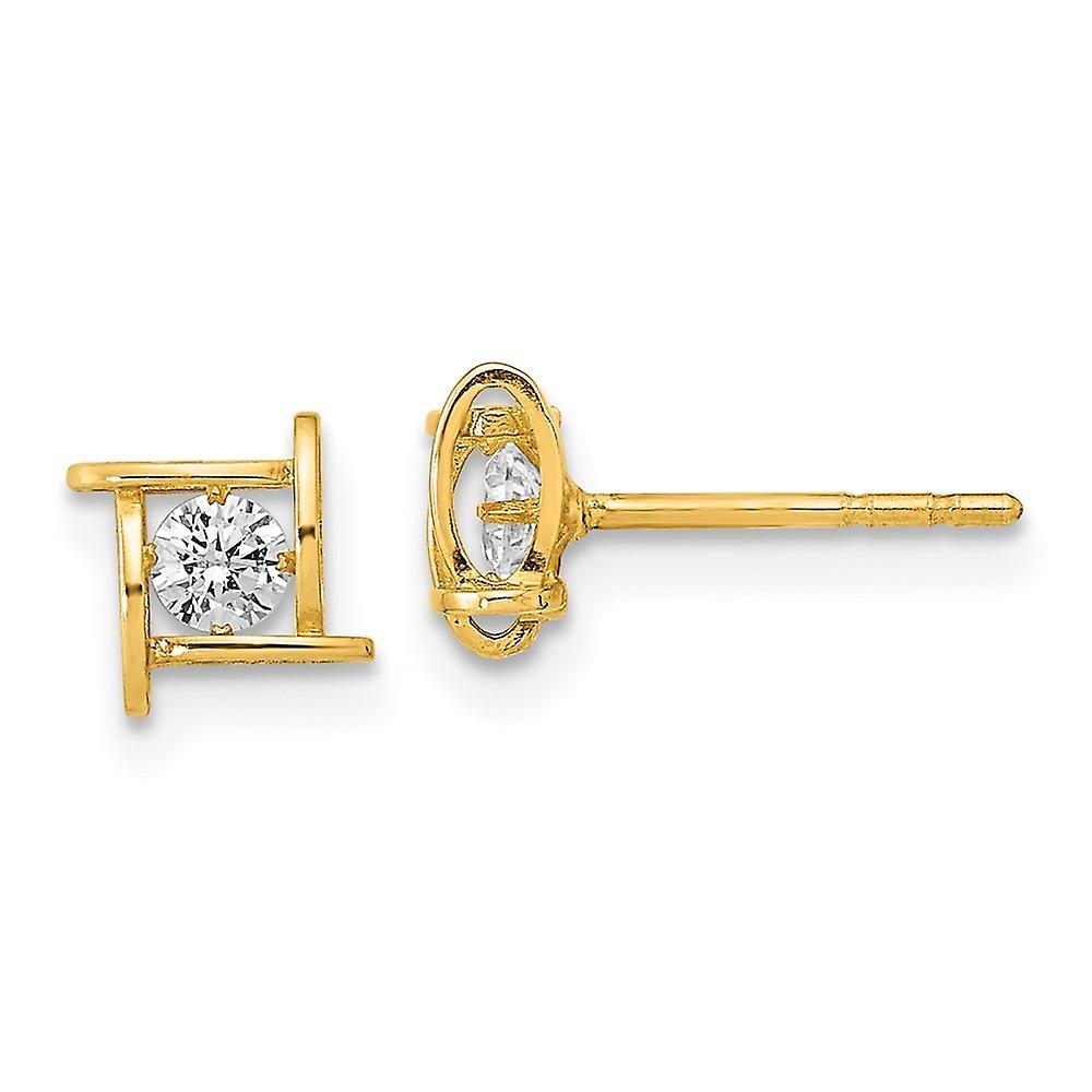 14k Gold Polished Cubic Zirconia Square Design Post Earrings 5.75x5.75mm Wide Stud Earring for Women