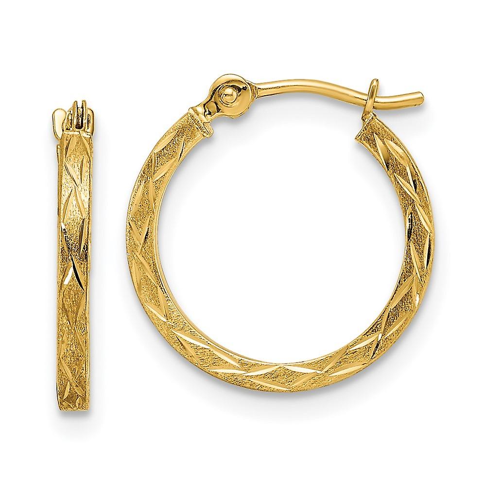14k Gold Polished and Satin Sparkle Cut Hoop Earrings 15.28x15.05mm Wide 1.5mm Thick-Hoop Earring for Women