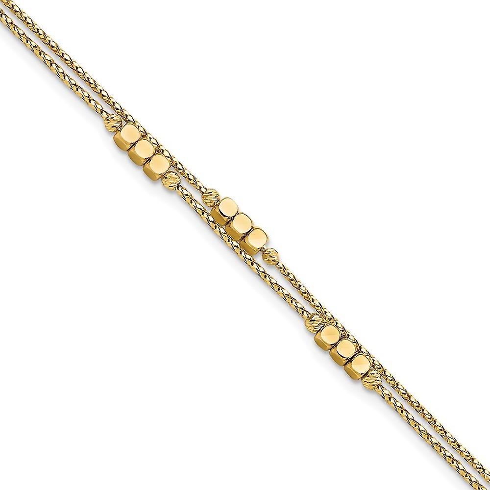 14k Gold Polished Sparkle Cut Beaded Double Strand Bracelet 7.5 Inch 3.2mm Wide-Strand-Bracelet for Women