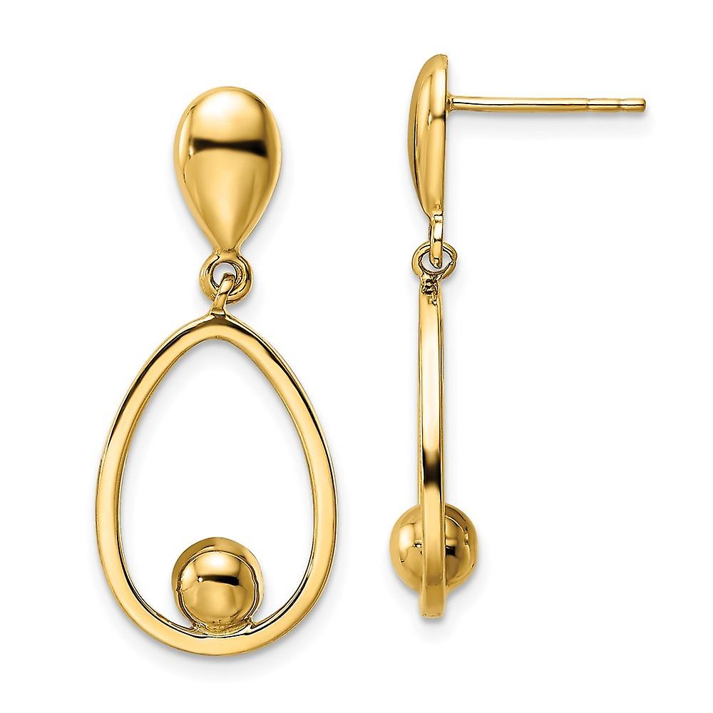 14k Gold Polished Teardrop Dangle Post Earrings 31.3x13.25mm Wide-Dangle Earring for Women