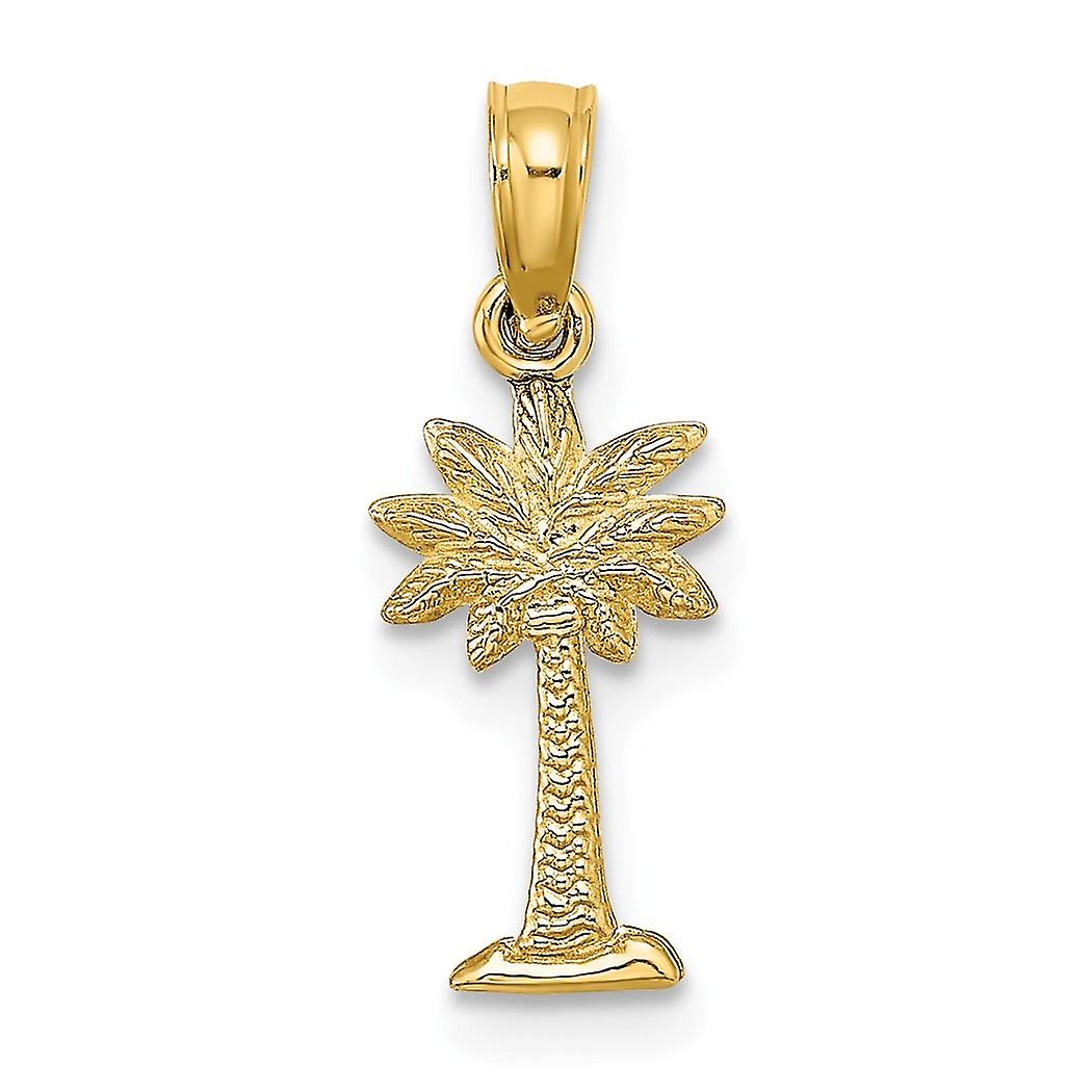 14k Gold Mini Palmetto Palm Tree 2 d and Textured Charm 12.4x7.1mm Wide 1.1mm Thick Pendant Necklace for Women