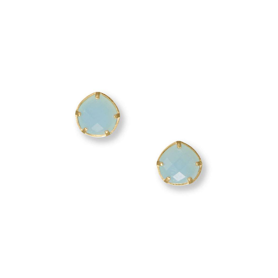 14k Gold Plated 925 Sterling Silver Pear Chalcedony Stud Earrings 8mm Fancy Cut Aqua-Stud Earring for Women