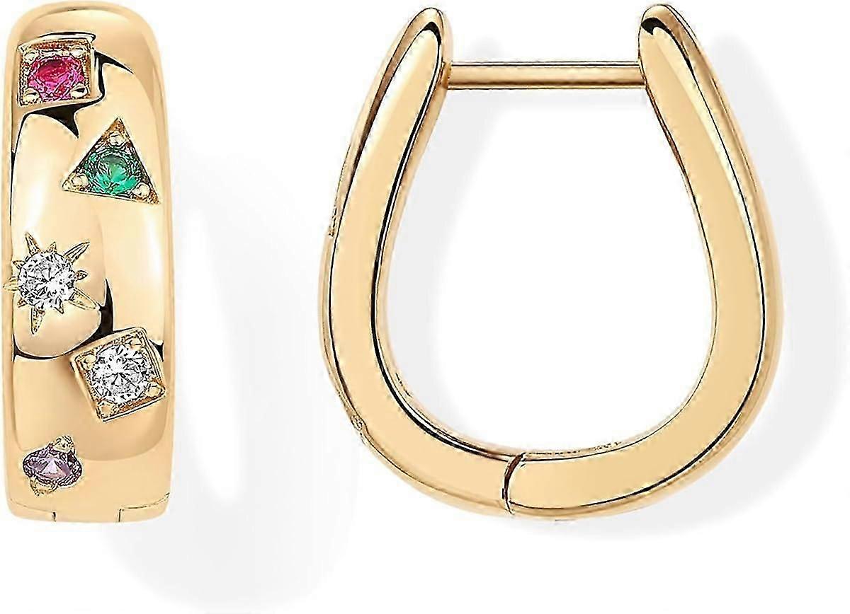 14K Gold Plated 925 Sterling Silver Posts Chunky Huggie Earrings for Women | Multi-Colored Cubic Zirconia Statement Hoop Earrings
