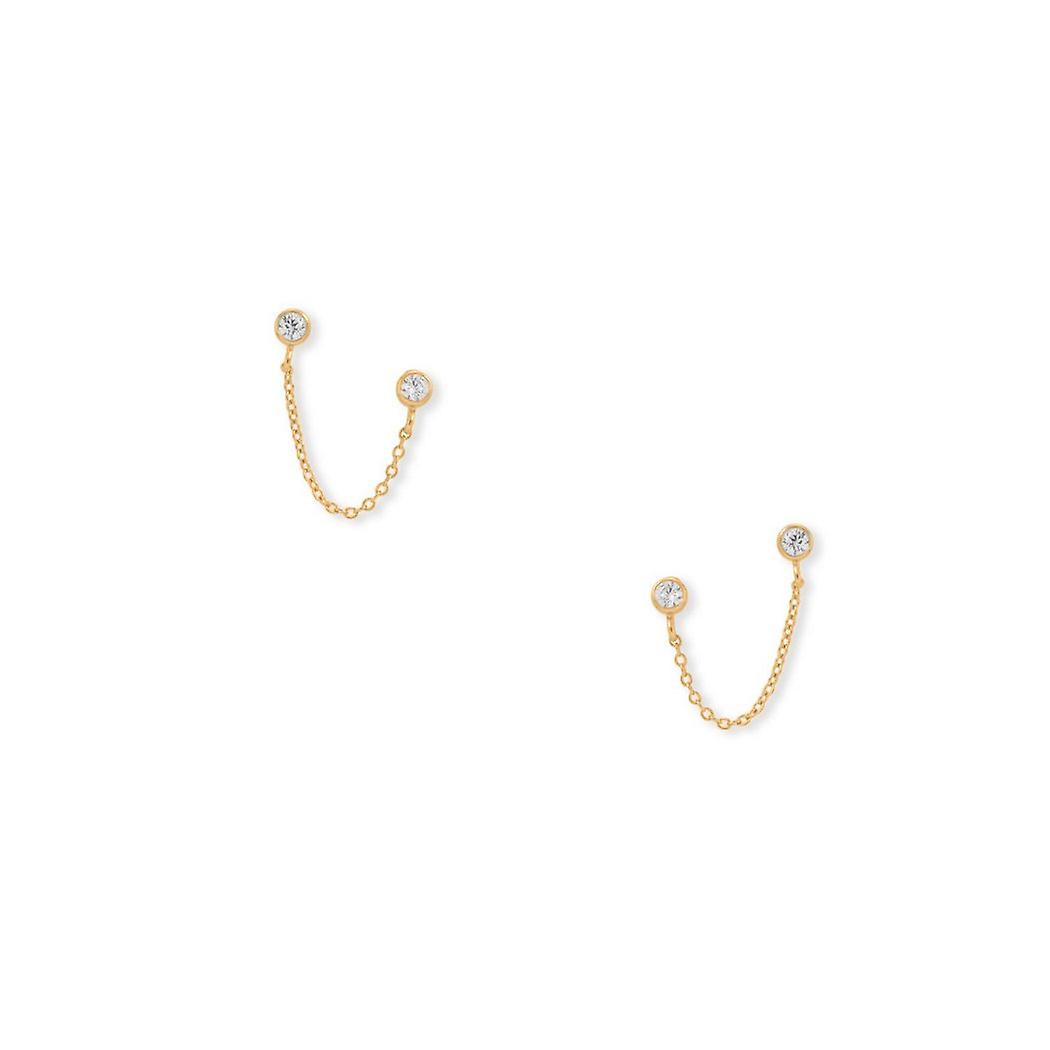 14k Gold Plated 925 Sterling Silver Round CZ Double Post Earrings 2.5mm Bezel Set CZ Studs Attached Stud Earring for Wom