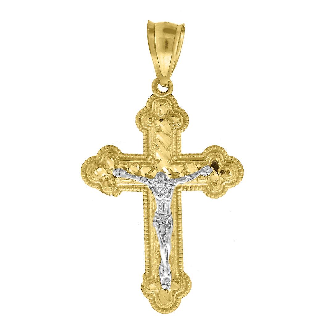 14k Gold Mens Two tone Dc Nugget Religious Faith Cross Crucifix Jesus Height 39.8mm Pendant Charm Necklace for Men