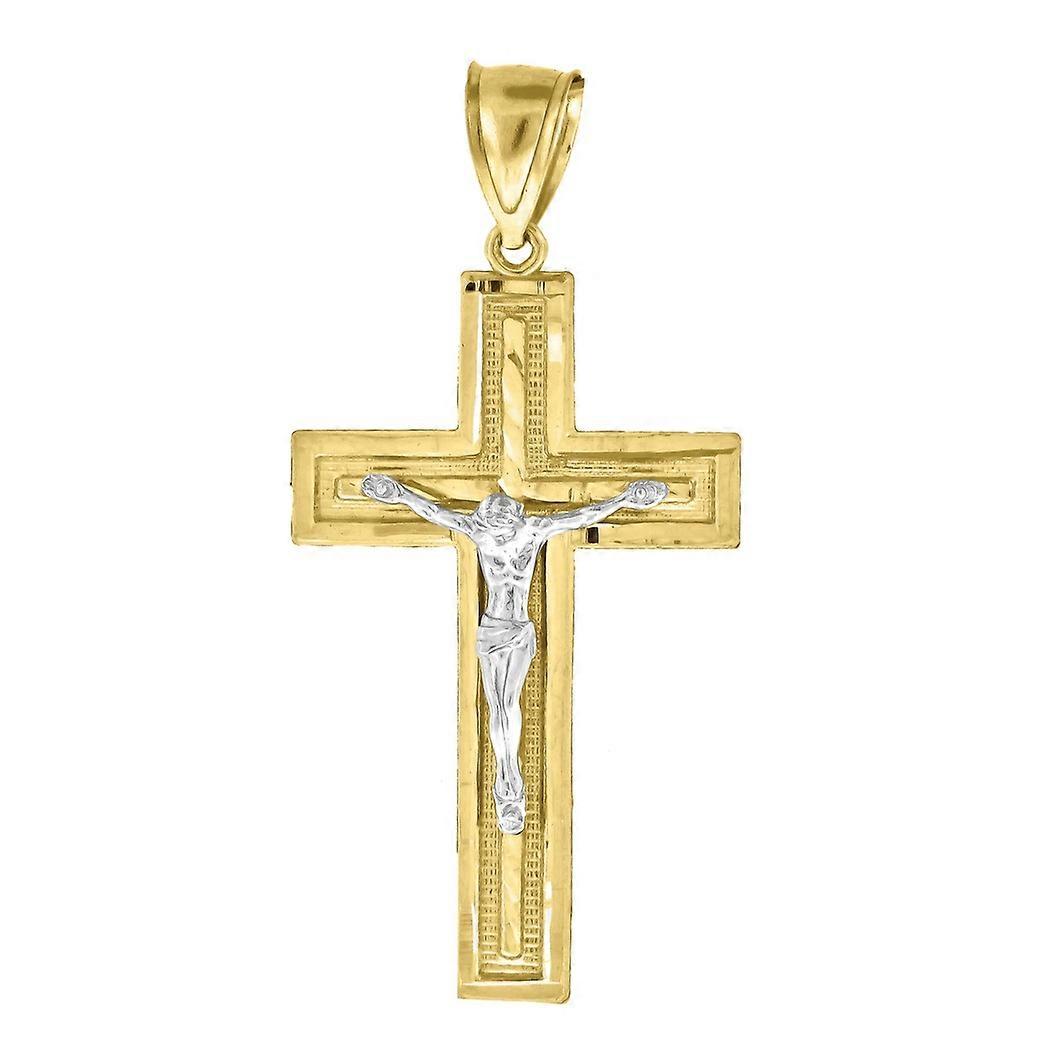 14k Gold Mens Two tone Dc Religious Faith Cross Crucifix Jesus Height 55.4mm Pendant Charm Necklace for Men