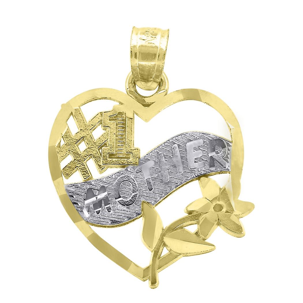 14k Gold Womens Two tone Dc No.1 Mother Love Heart Flower Pendant Necklace Charm 21.2x15.2mm Wide-Pendant for Women