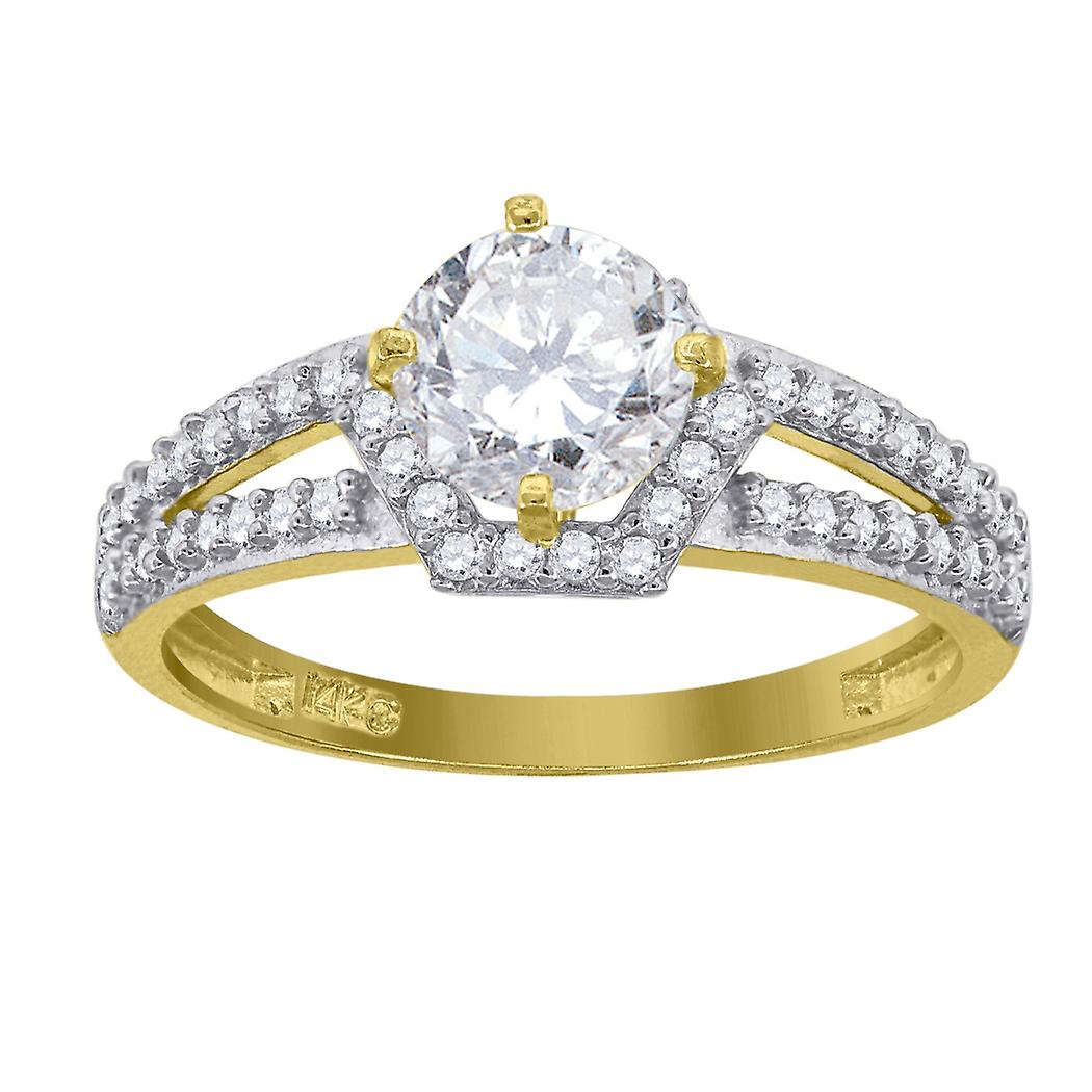 14k Gold Womens Two tone CZ Center Round Stone Wedding Engagement Band Ring 6.4x3mm Wide-Engagement-Ring for Women and M