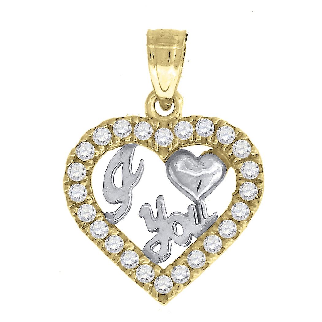 14k Gold Womens Two tone Dc I Love You Height 19.3mm Heart Pendant Necklace Charm-Pendant for Women