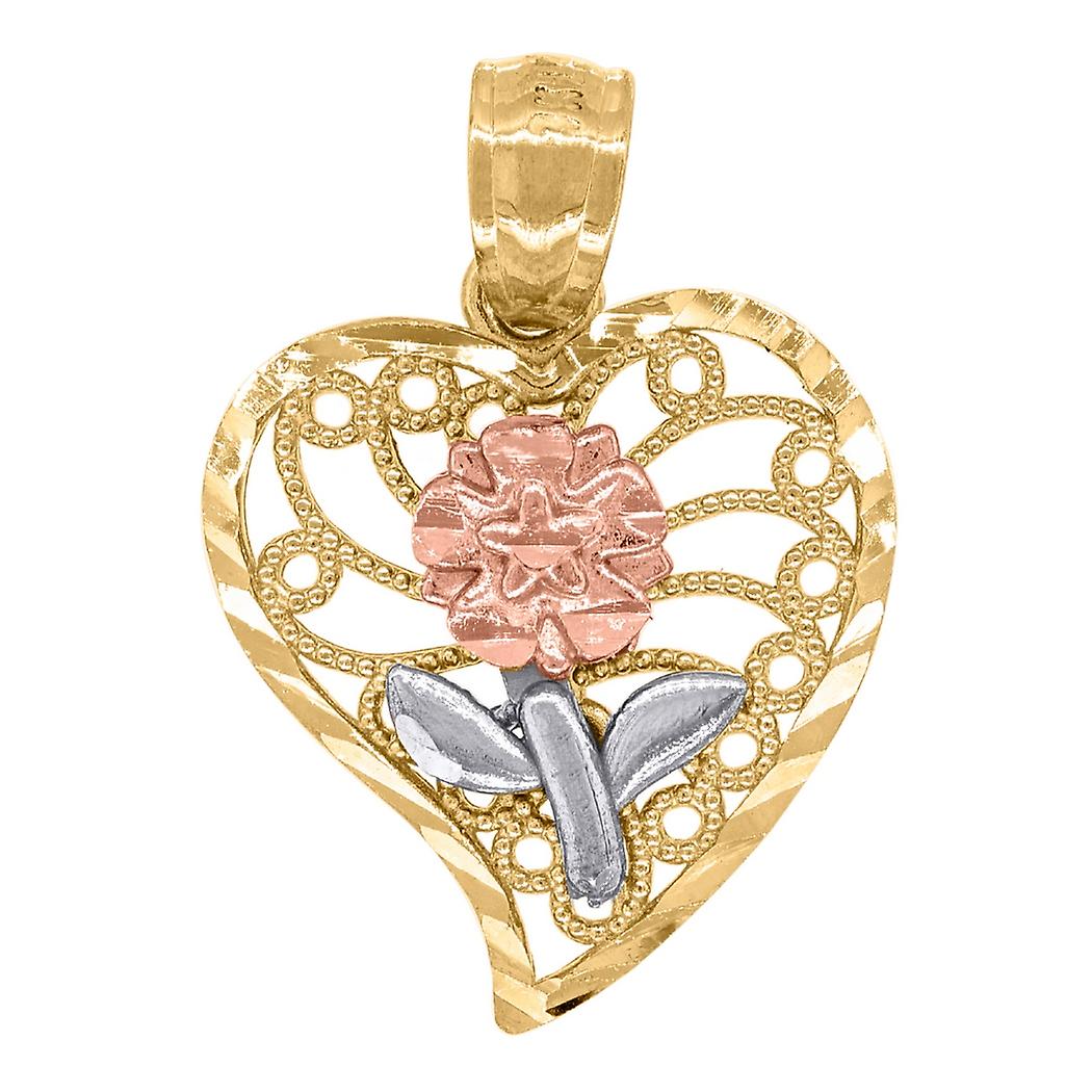 14k Gold Womens Tri color Dc Flower Love Heart Height 19.6mm Pendant Necklace Charm-Pendant for Women
