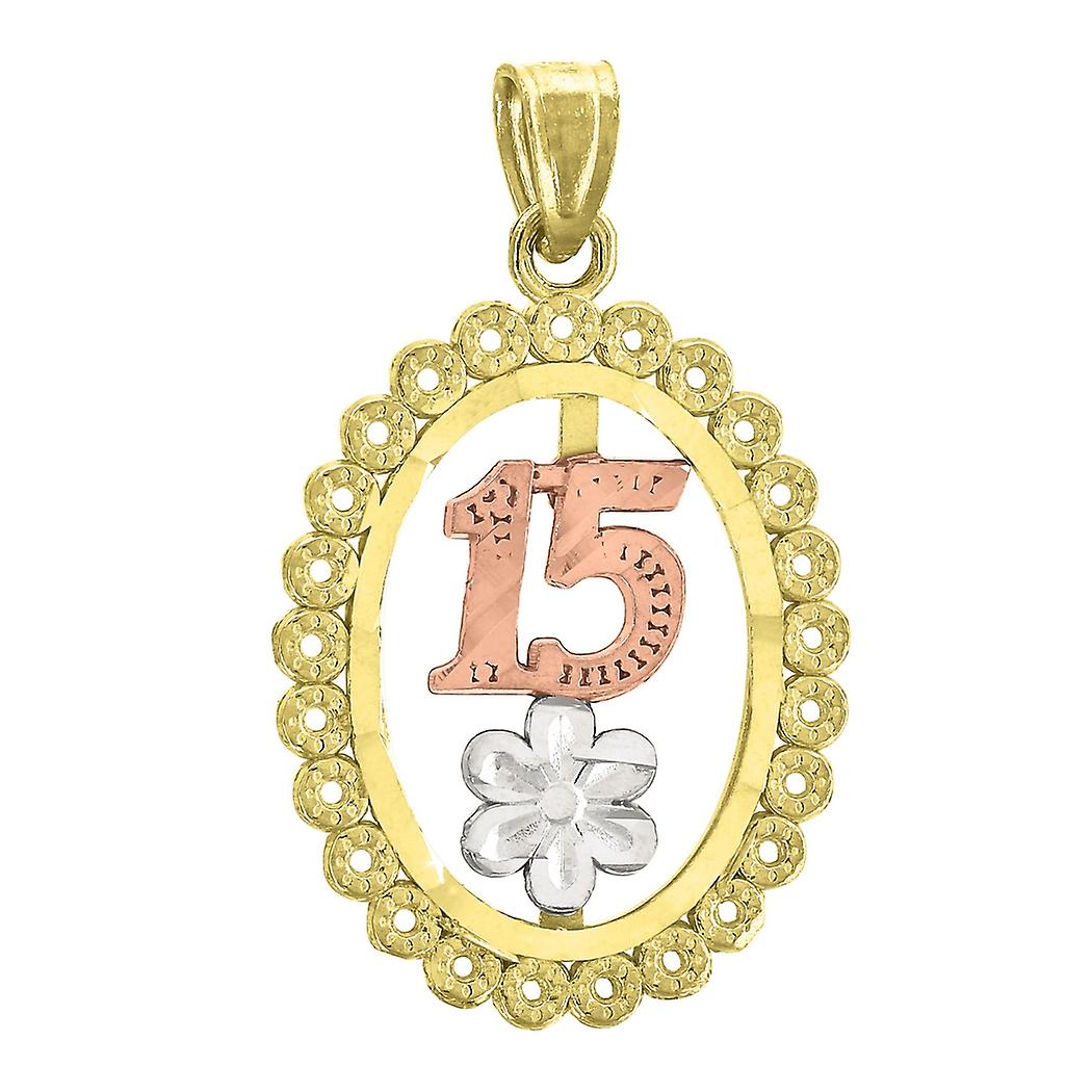 14k Gold Womens Tri color 15 Anos Quinceanera Pendant Necklace Charm 26.6x15.9mm Wide-Pendant for Women