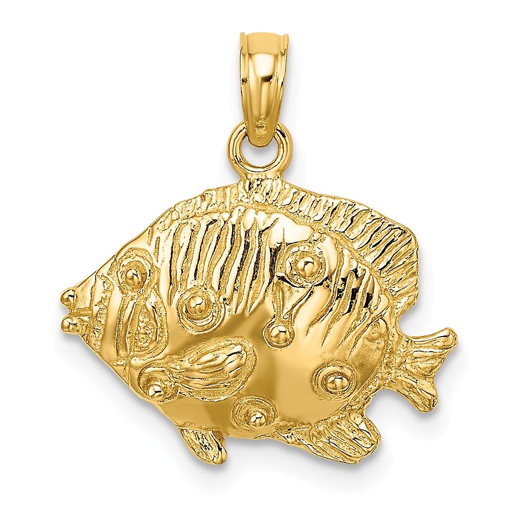 14k Gold Animal Sealife Fish 2 d / High Polish and Engraved Charm 13.75x17.8mm Wide 3.1mm Thick Pendant Necklace for Wom