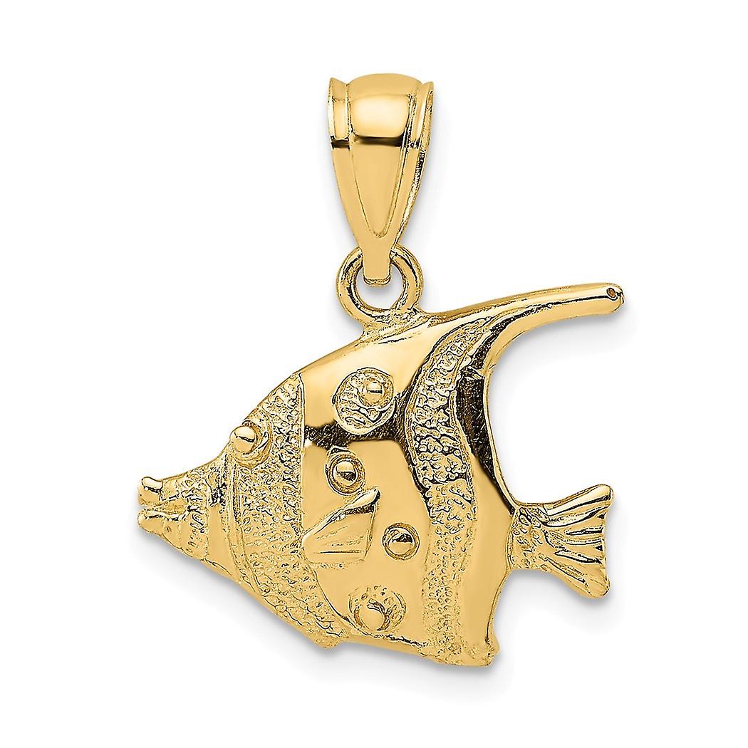 14k Gold Animal Sealife Fish 2 d / High Polish and Engraved Charm 13.9x17.6mm Wide 2.8mm Thick Pendant Necklace for Wome