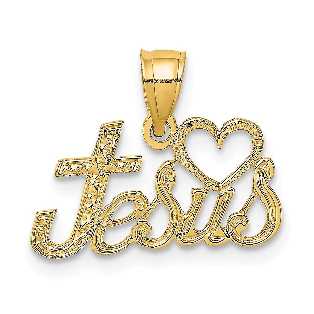 14k Gold Love Religious Faith Inspiration Jesus Script Charm 13.6mm long Pendant Necklace for Women