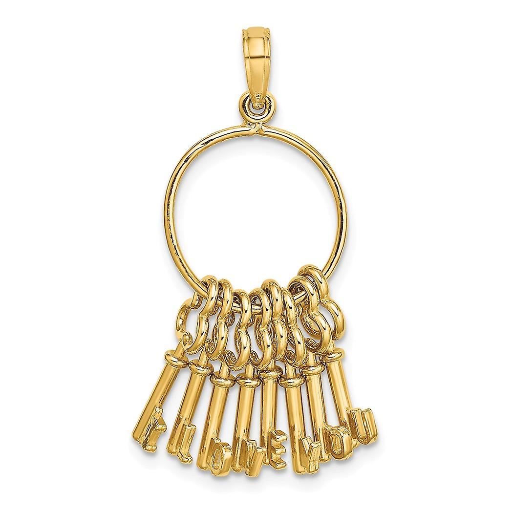 14k Gold I Love You Key Chain Pendant Moveabl 33.1x14mm Wide Chain Necklace for Women and Men