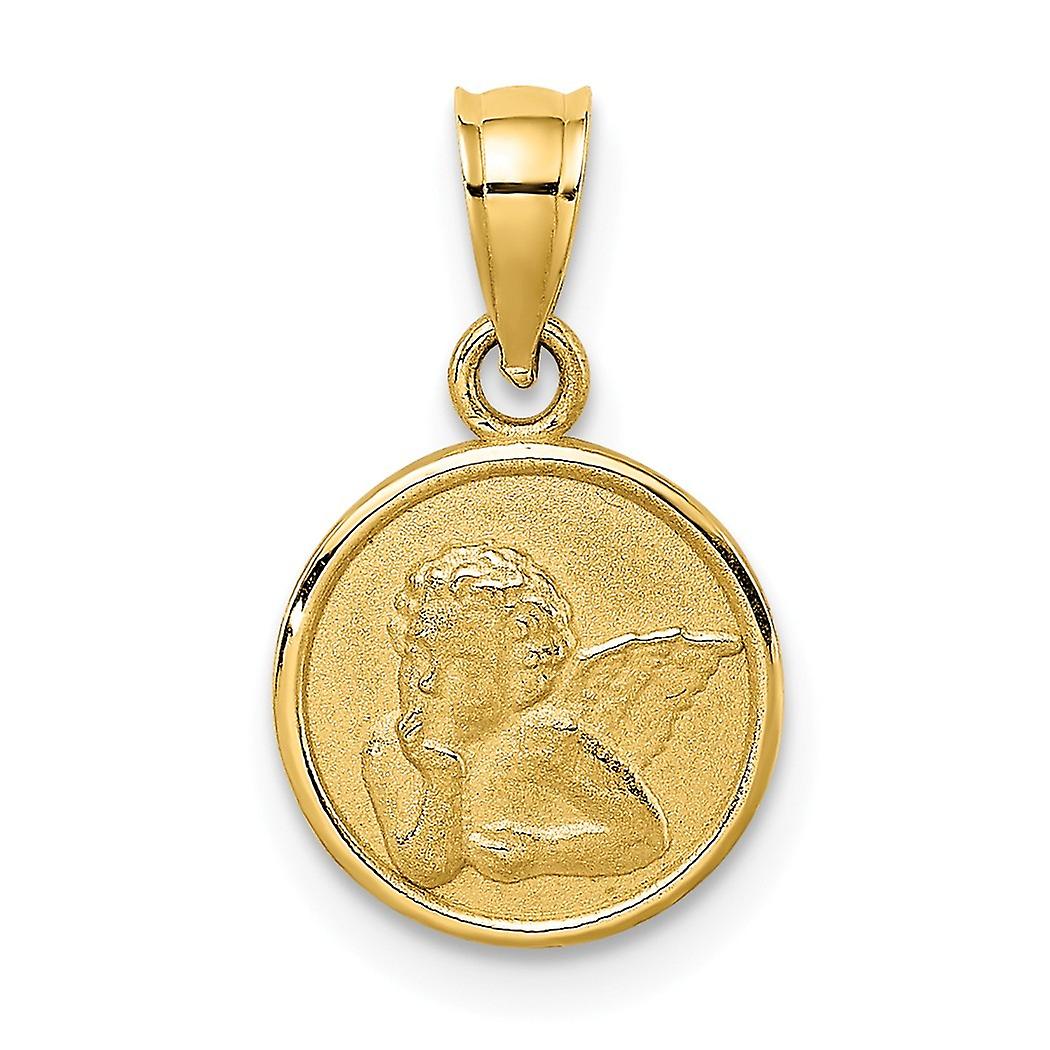 14k Gold 10mm Religious Guardian Angel disk Pendant Necklace Engraved-Pendant for Women - 1.0 Grams