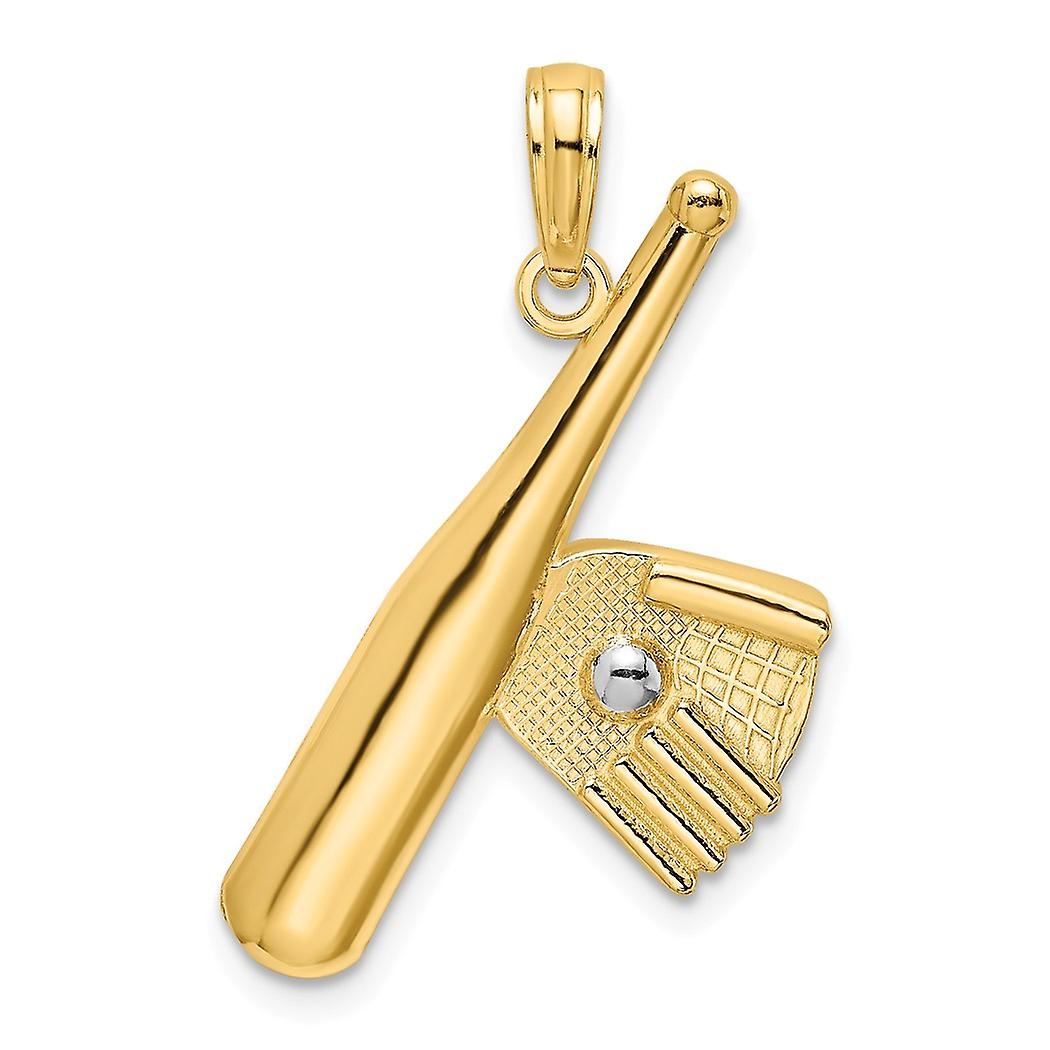 14k Gold 20mm Baseball Bat With White Ball In Glove Charm Pendant Necklace for Women