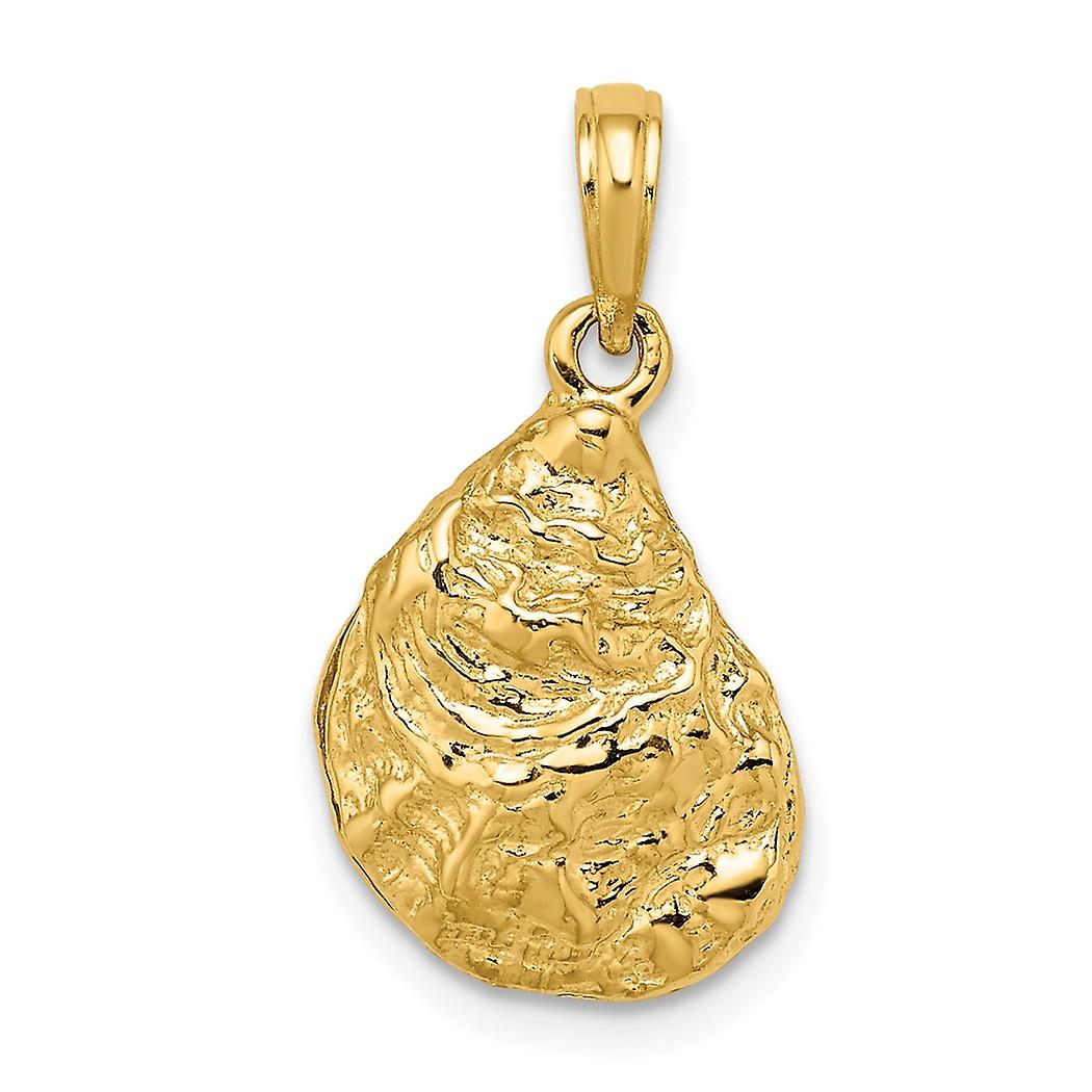14k Gold 3 d Oyster Shell Textured Charm 21x13mm Wide 4.8mm Thick Pendant Necklace for Women