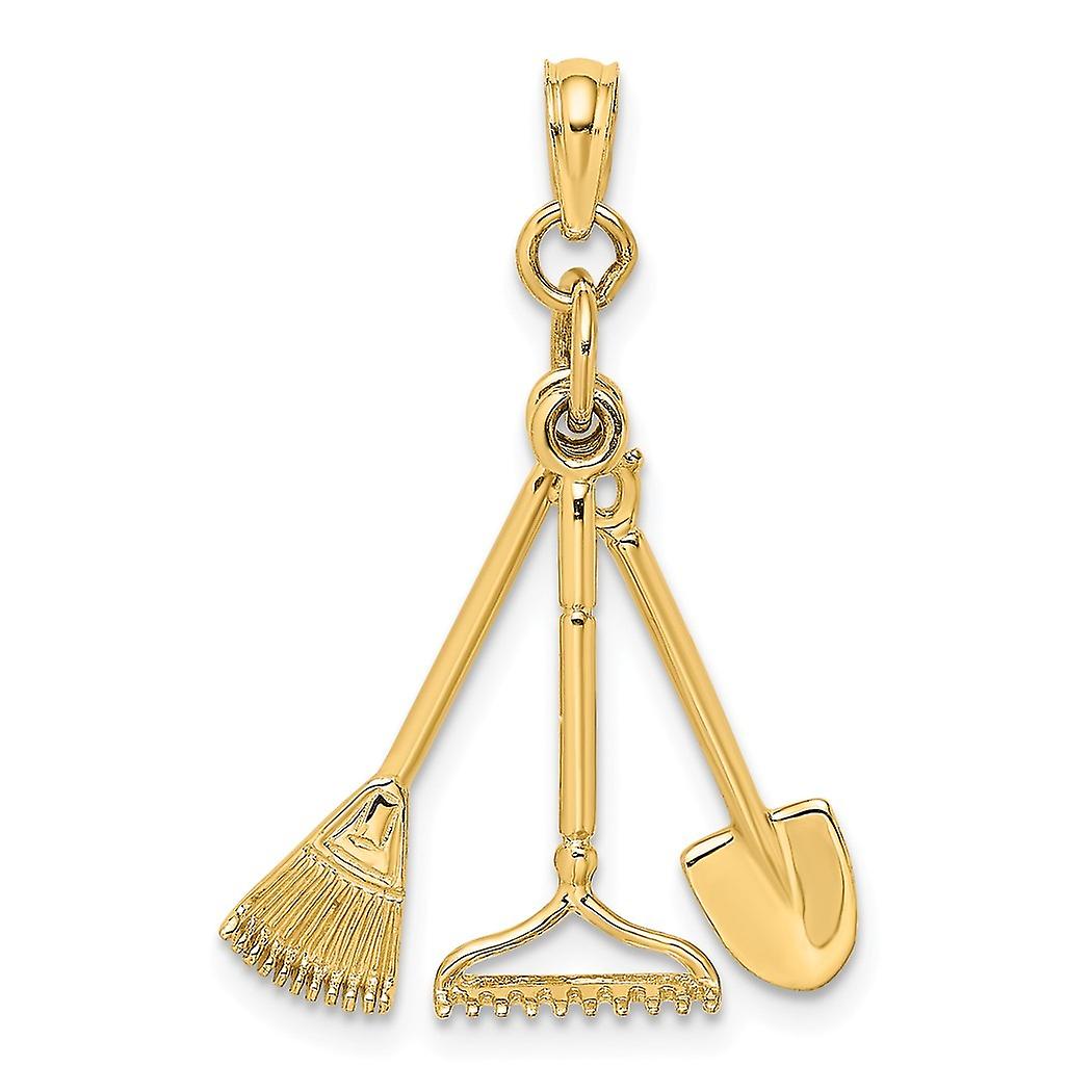 14k Gold 3 d Garden Tool Collection Moveable Charm 18.8x8.9mm Wide 4.2mm Thick Pendant Necklace for Women