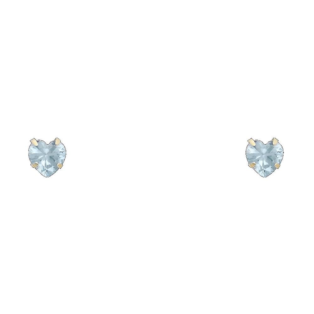 14k Gold 5mm Love Heart Cubic Zirconia Stamped Style Screw Stud March Birthday Earrings-Stud Earring for Women