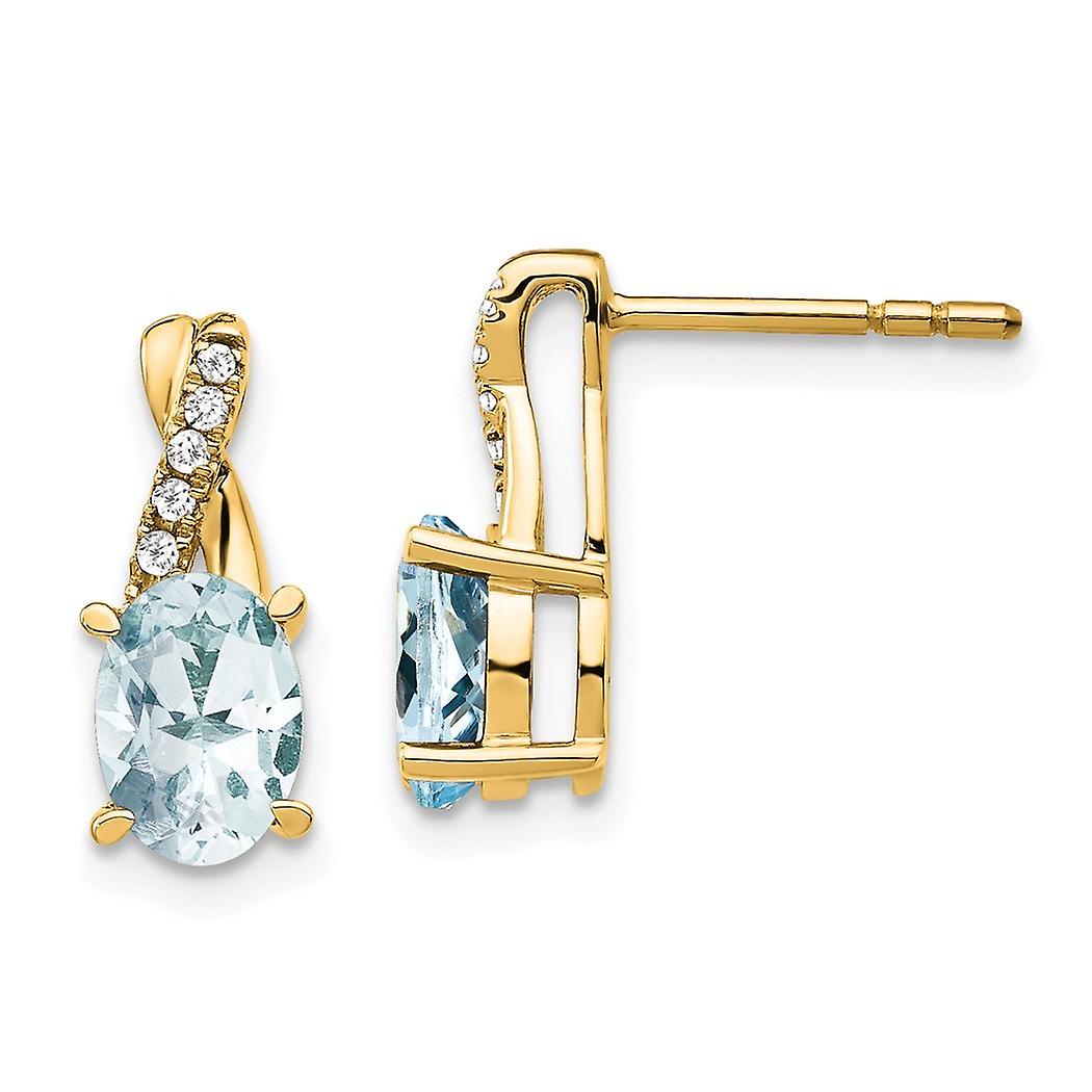 14k Solid Yellow Gold Aquamarine and Diamond Earrings 13.6x5.25mm Wide Stud Earring for Women