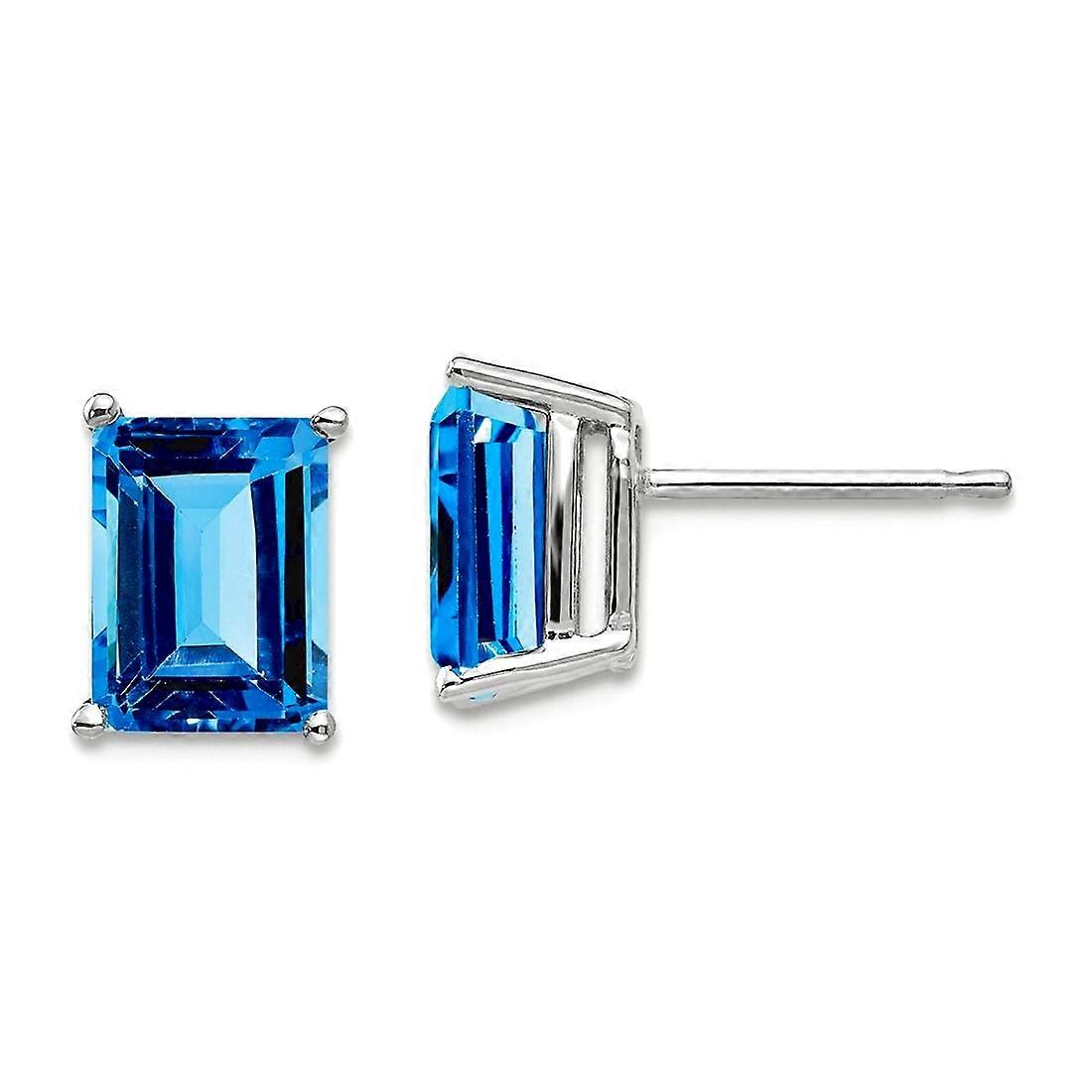 14k Solid Yellow Gold Emerald-Cut Blue Topaz Earrings Stud Earring for Women