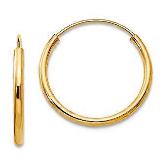 14Kソリッドイエローゴールドエンドレスフープピアス-女性のためのフープイヤリング