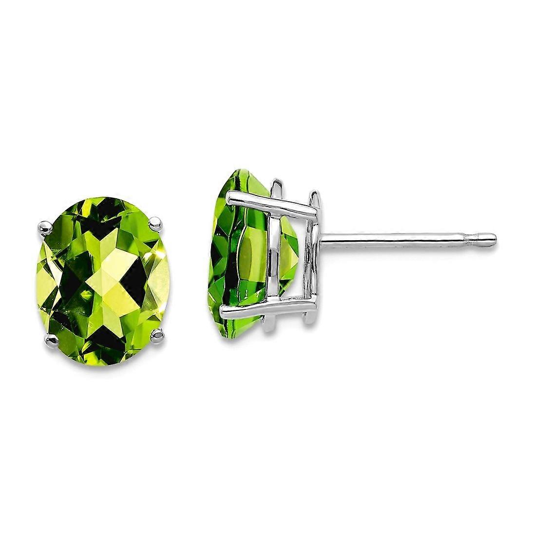 14k Solid Yellow Gold Oval Peridot Earrings Stud Earring for Women