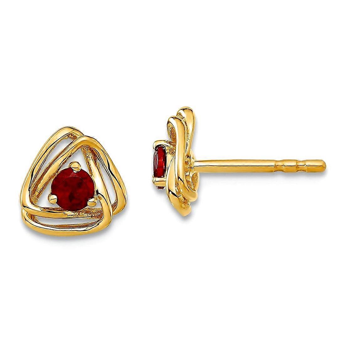 14k Solid Yellow Gold Garnet Post Earrings 7.3x7.3mm Wide Stud Earring for Women - 1.0 Grams .26 cwt