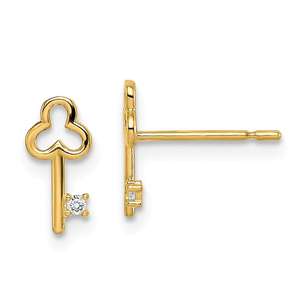 14k Cubic Zirconia Key Post Earrings - Measures 9.2mm long - in 14k Yellow Gold - - Length of Item: 9.2 mm - Earring Closure: Post & Push Back - Earring Type: Button - Finish: Polished - - [ Potential Enhancement Methods: cubic zirconia ] - Synthetic. Some are covered with a product that makes the stone more durable. - [ Care and Handling: cubic zirconia ] - Clean with warm soapy water and a soft cloth. -