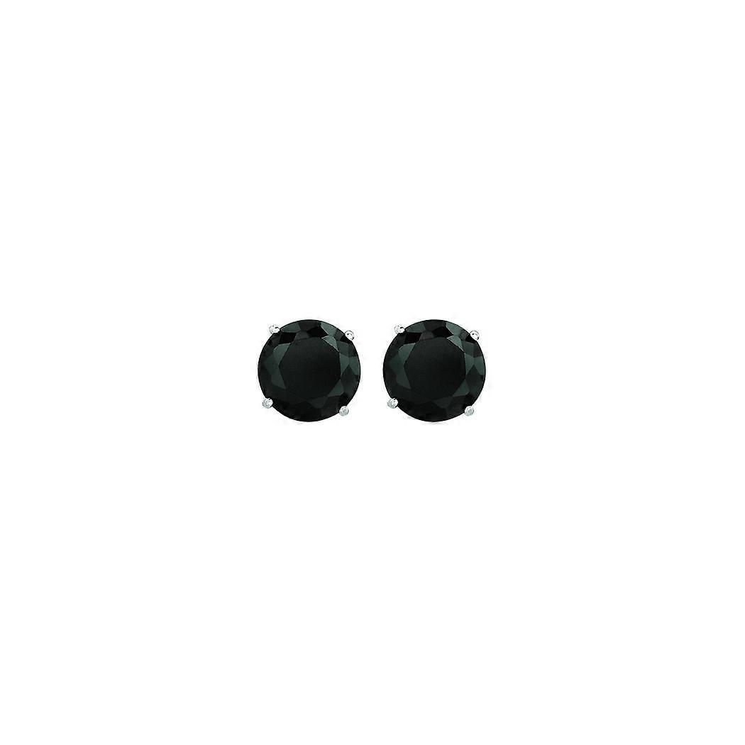 14k Solid Yellow Gold Shiny Round Faceted Black Cubic Zirconia Stud Earrings-Stud Earring for Women
