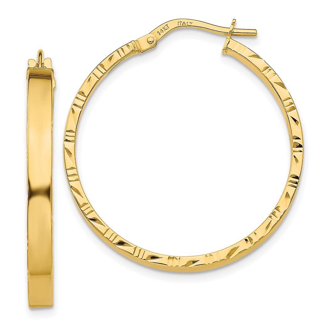 14k Solid Yellow Gold Sparkle Cut Edge Large 3mm Polished Hoop Earrings 30x30mm Wide 3mm Thick-Hoop Earring for Women