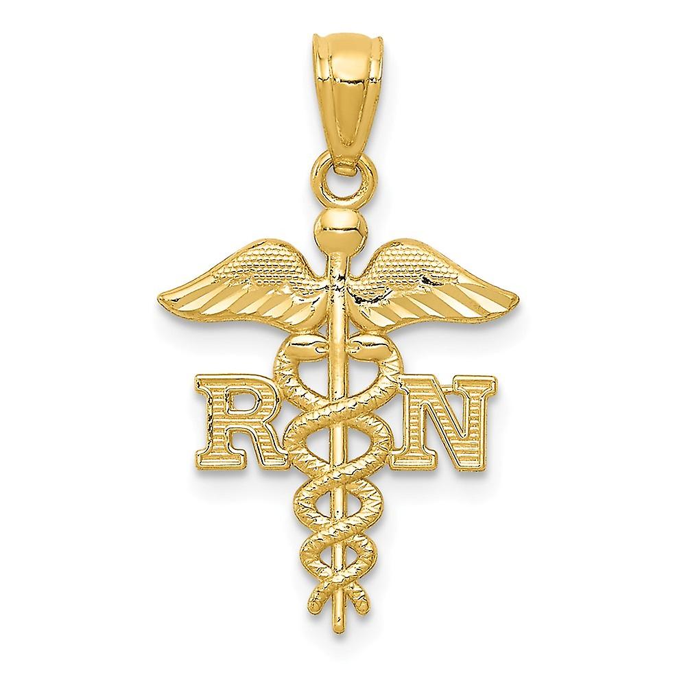 14k Solid Yellow Gold Sparkle Cut Polished RN Nurse Pendant Necklace 24.34x14.86mm Wide 0.85mm Thick-Pendant for Women