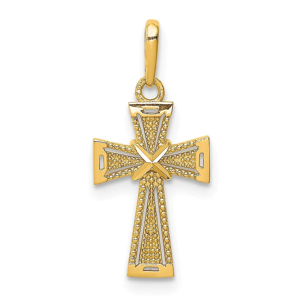 14k Solid Yellow Gold Sparkle Cut Religious Faith Cross Pendant Necklace 20.5x9.5mm Wide-Pendant for Women