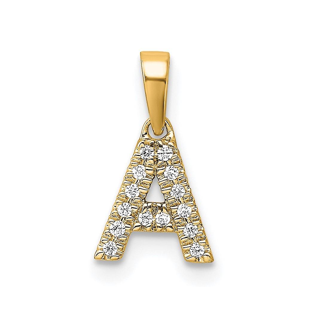 14k Solid Yellow Gold Diamond Letter A Initial With Bail Pendant Necklace 13mm Long-Pendant for Women