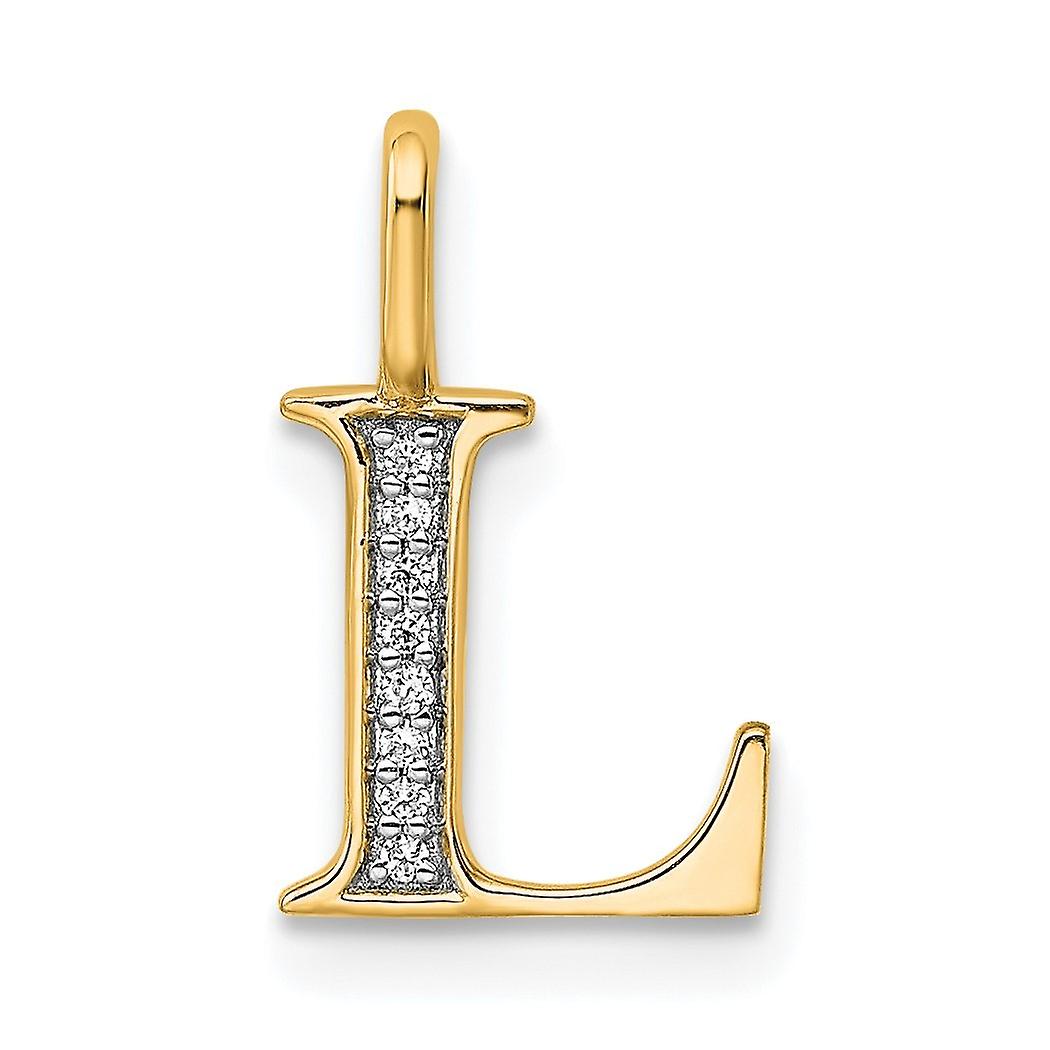 14k Solid Yellow Gold Diamond Letter L Initial Pendant Necklace 15.26mm Long-Pendant for Women