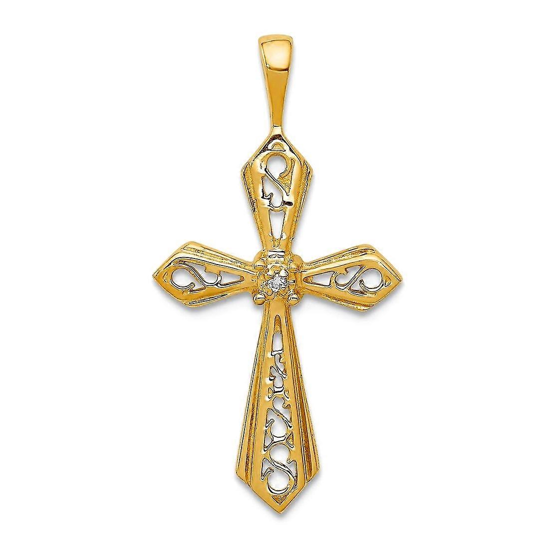14k Solid Yellow Gold Diamond Religious Faith Cross Pendant Necklace 28x14mm Wide-Pendant for Women