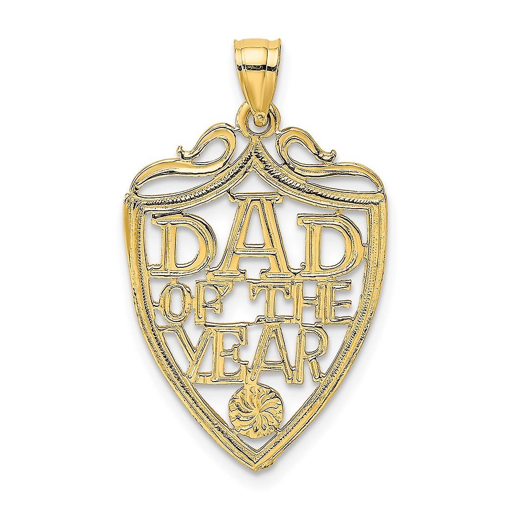 14k Solid Yellow Gold Textured Polished Dad of the Year Plaque Pendant Necklace 26.3x7.1mm Wide-Pendant for Women