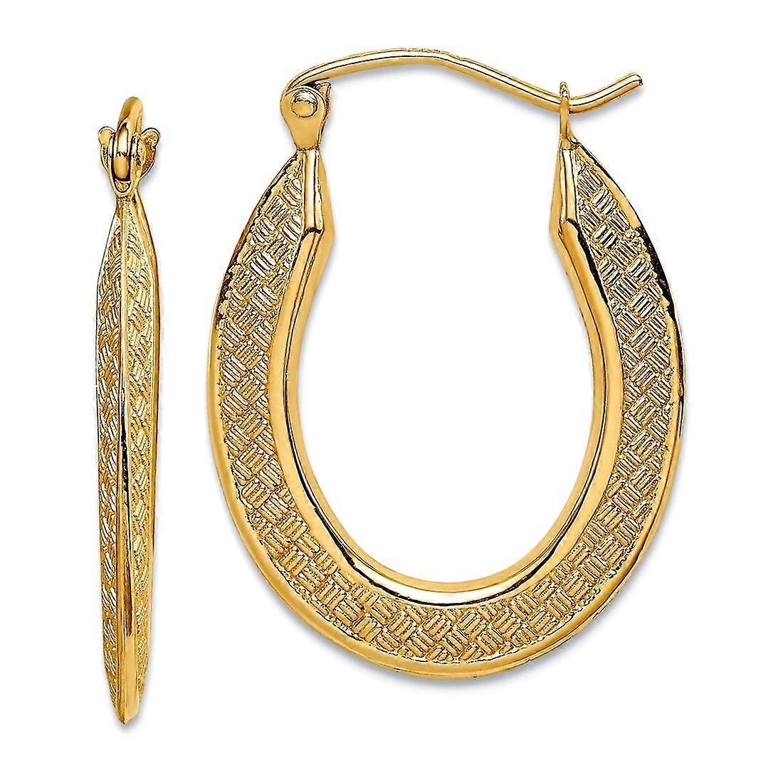 14k Solid Yellow Gold Textured Stamped Hoop Earrings 18.5mm Wide 1mm Thick-Hoop Earring for Women