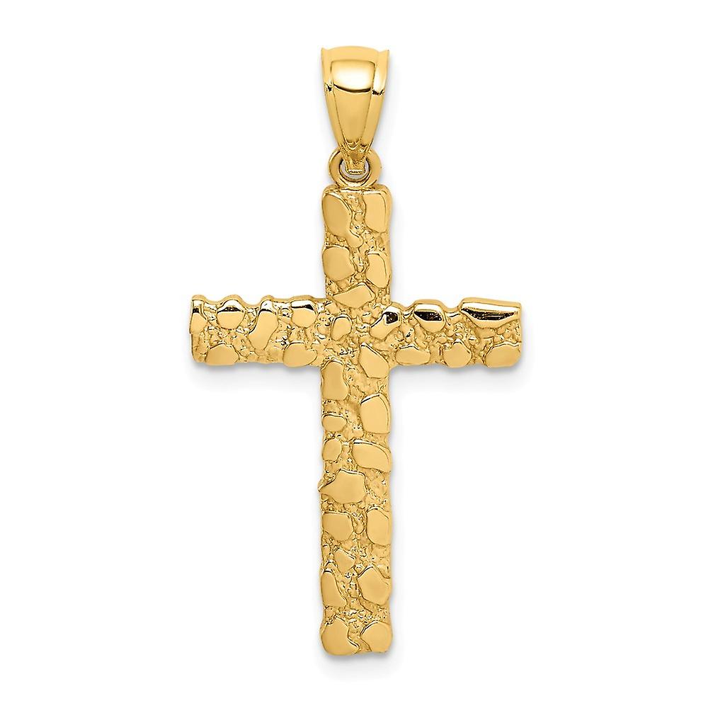 14k Solid Yellow Gold Nugget Religious Faith Cross Pendant Necklace 32x17.5mm Wide-Pendant for Women