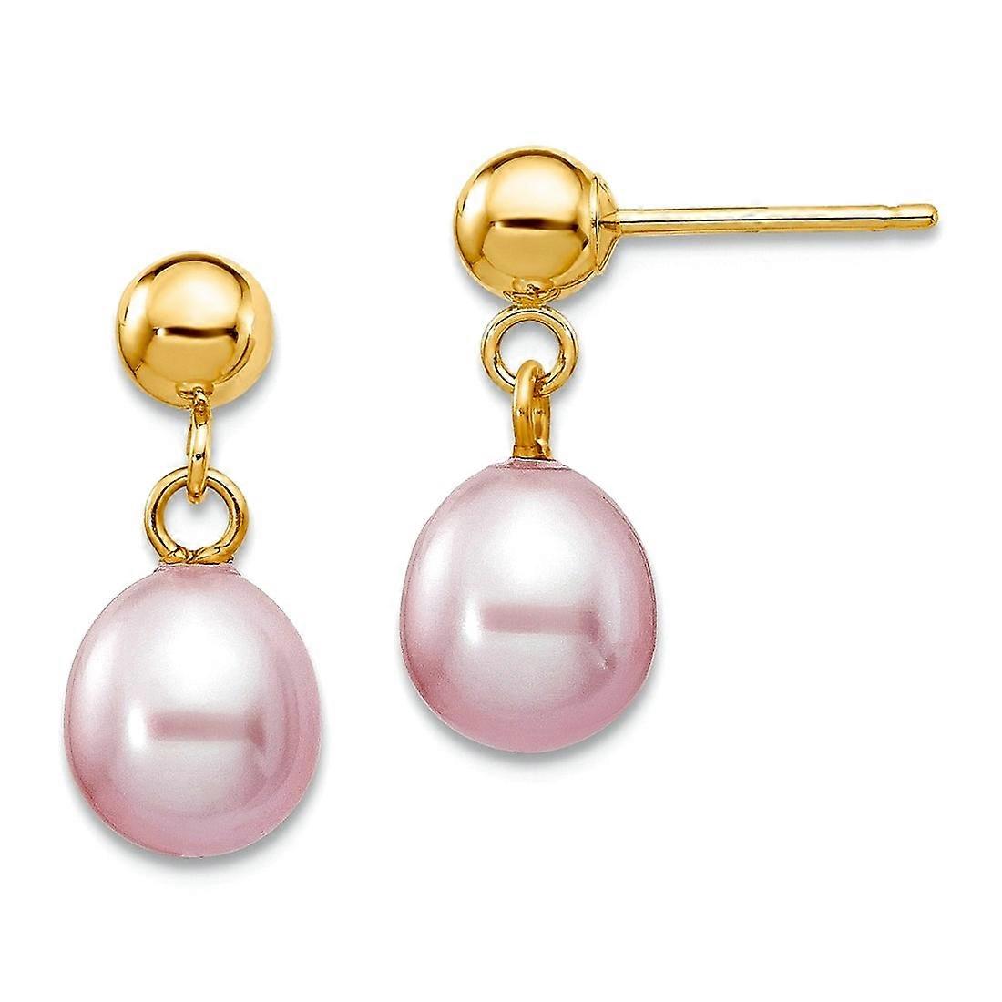 14k Solid Yellow Gold Purple Freshwater Cultured Pearl Long Drop Dangle Earrings-Dangle Earring for Women