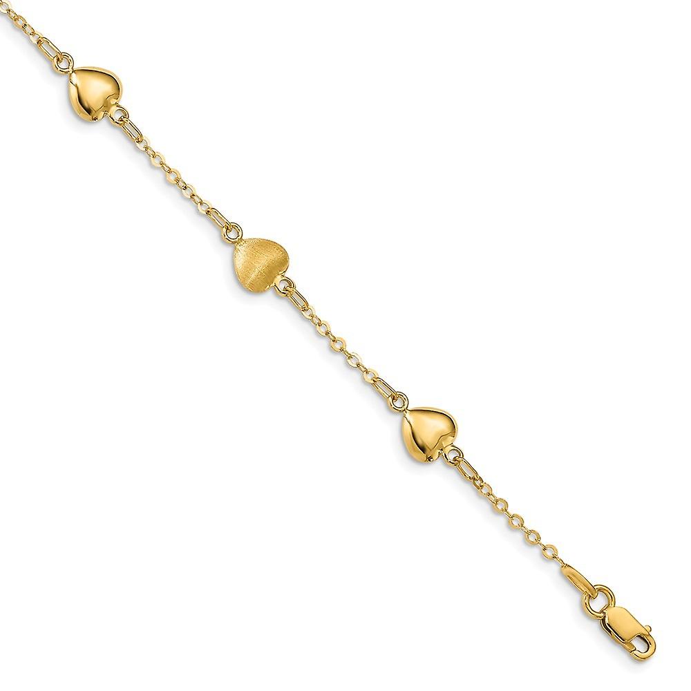 14k Solid Yellow Gold Brushed and Polished Love Hearts Bracelet 7 Inch 7mm Wide Link-Bracelet for Women