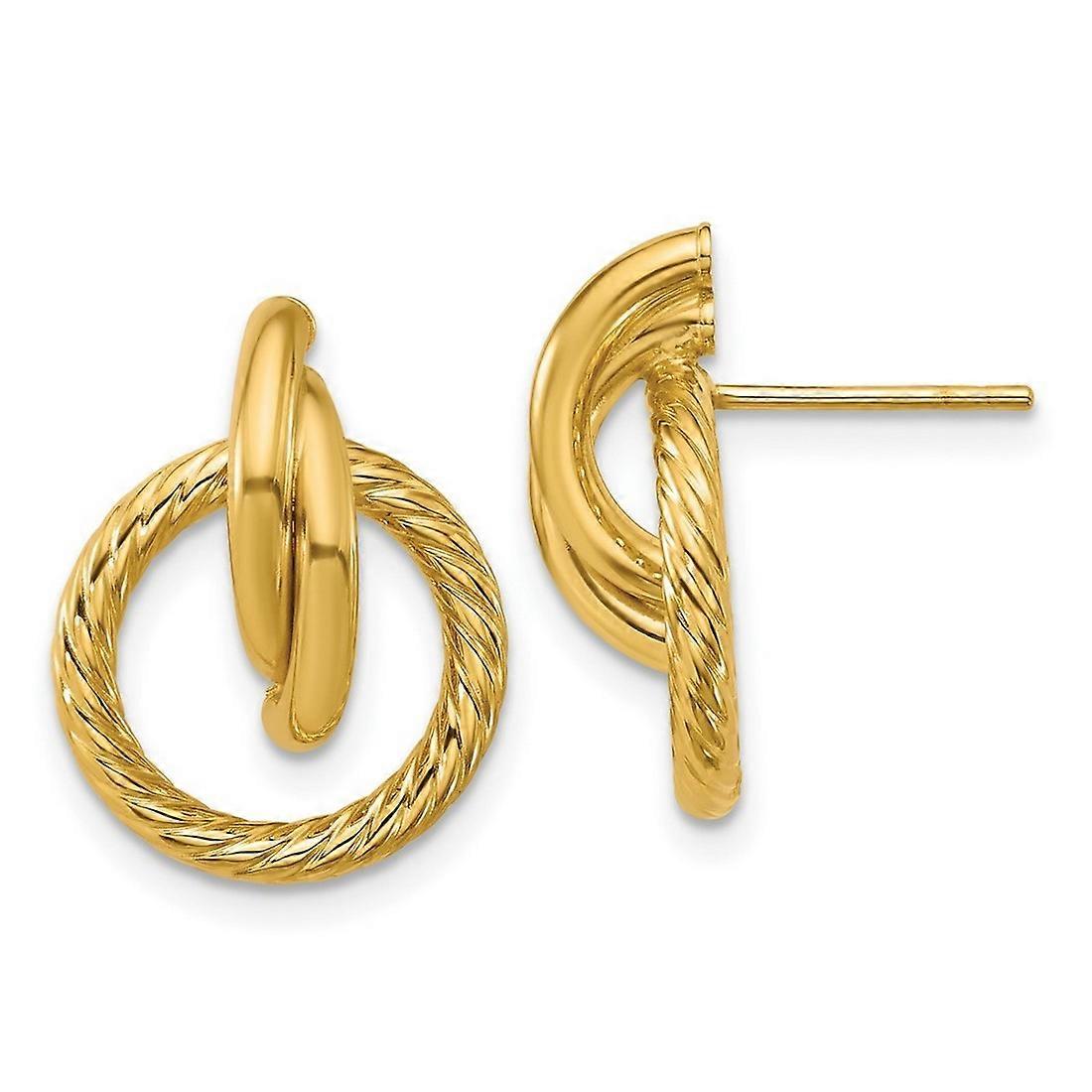14k Solid Yellow Gold Polished and Twisted Circles Drop Post Earrings 18.55x14.2mm Wide Stud Earring for Women