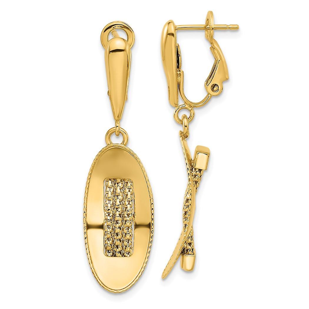 14k Solid Yellow Gold Polished and Textured Omega Back Long Drop Dangle Earrings 39x11.25mm Wide-Dangle Earring for Wome