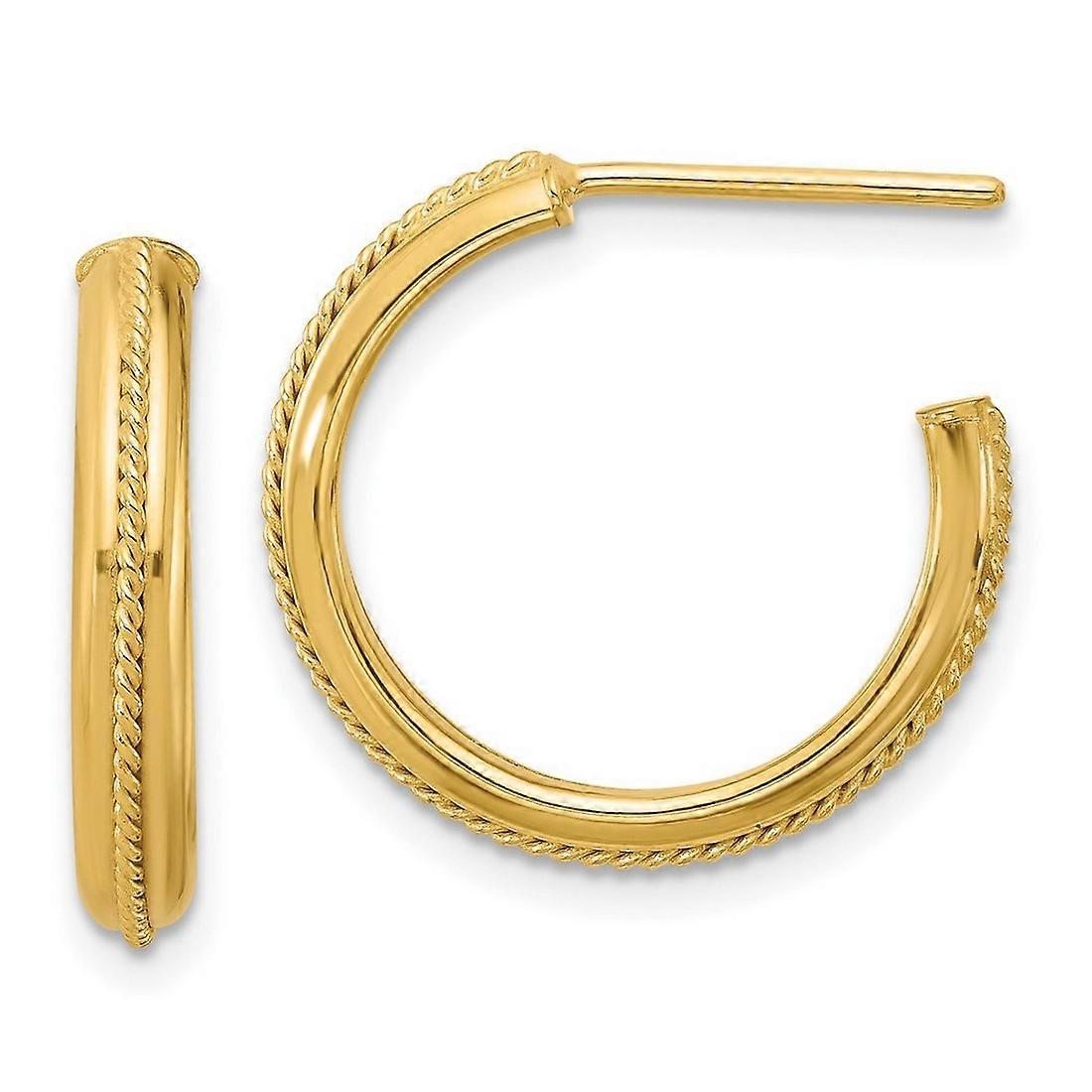 14k Solid Yellow Gold Polished and Textured Round J hoop Earrings 20x22mm Wide 3mm Thick-Hoop Earring for Women