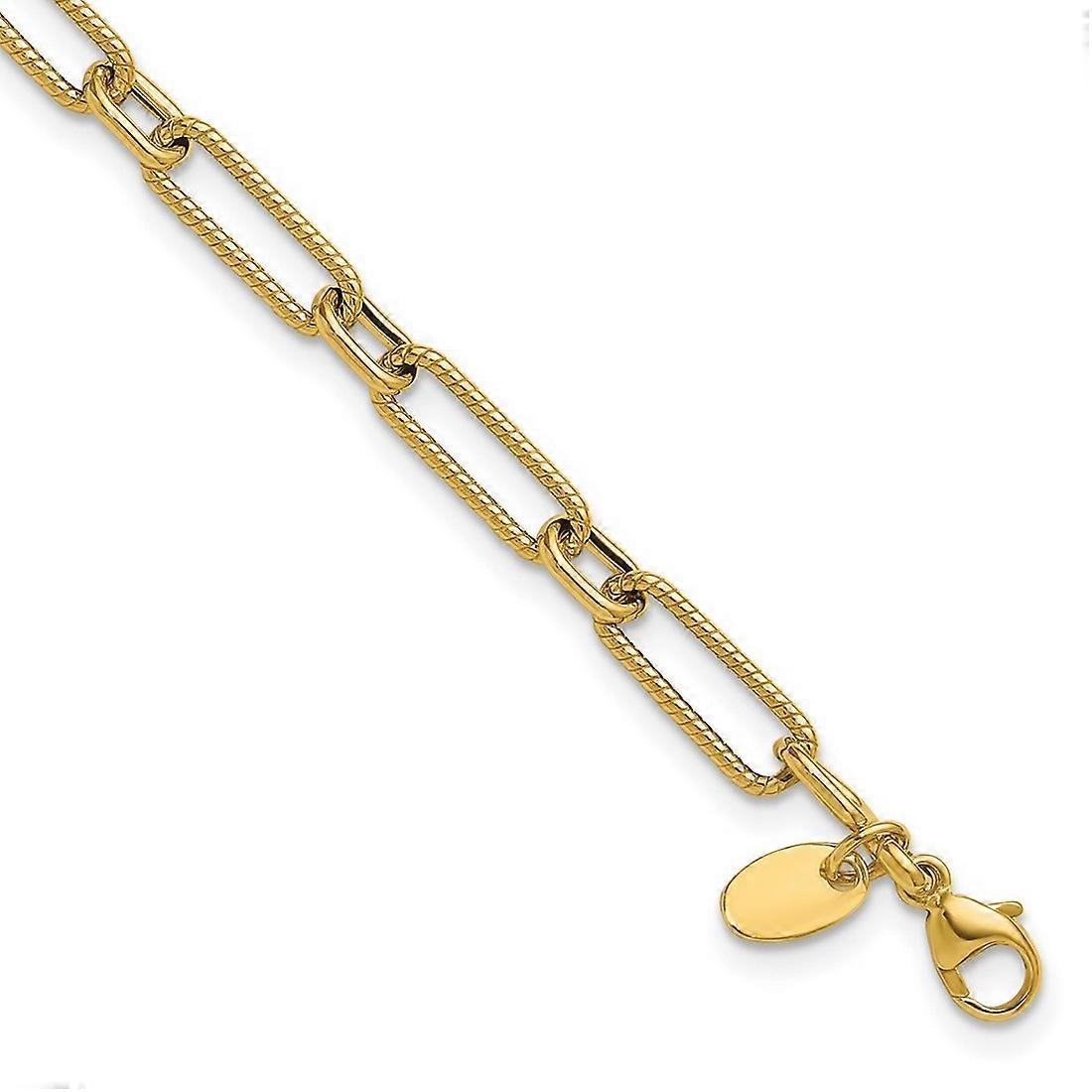 14k Solid Yellow Gold Polished and Textured 4.2mm Fancy Link Bracelet 7.5 Inch-Link-Bracelet for Women