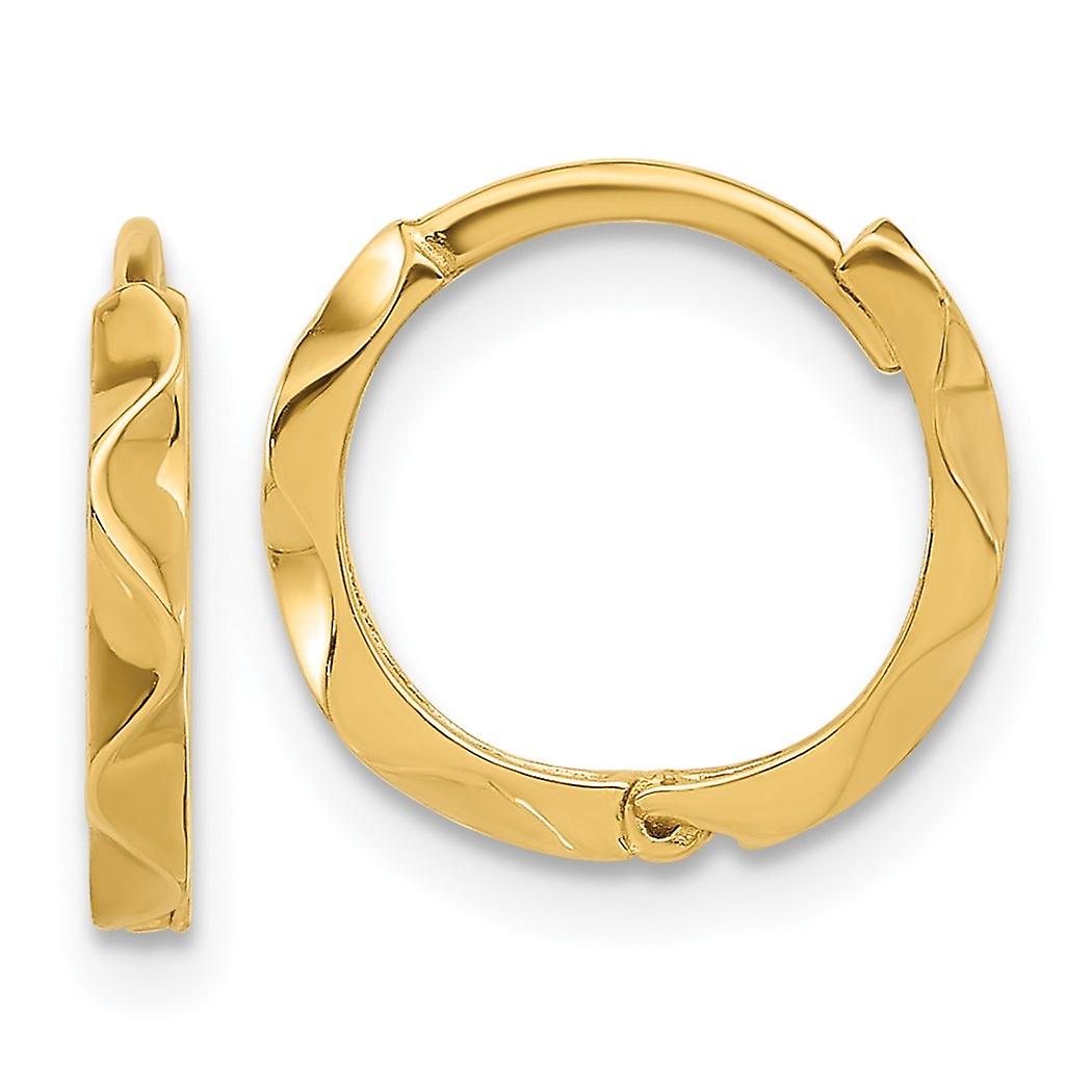 14k Solid Yellow Gold Polished Wavy Hinged Hoop Earrings 12.3x13mm Wide 1.8mm Thick-Hoop Earring for Women
