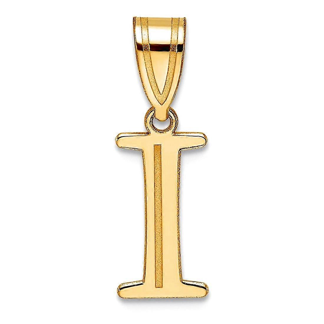 14k Solid Yellow Gold Polished Etched Letter I Initial Pendant Necklace 20mm Long 0.35mm Thick-Pendant for Women