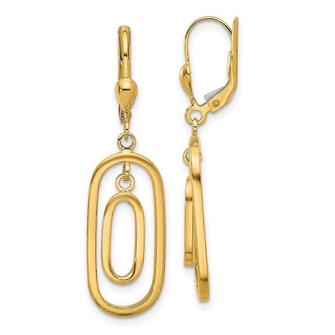 14k Solid Yellow Gold Polished Ovals Dangle Leverback Earrings 40x11.45mm Wide-Dangle Earring for Women
